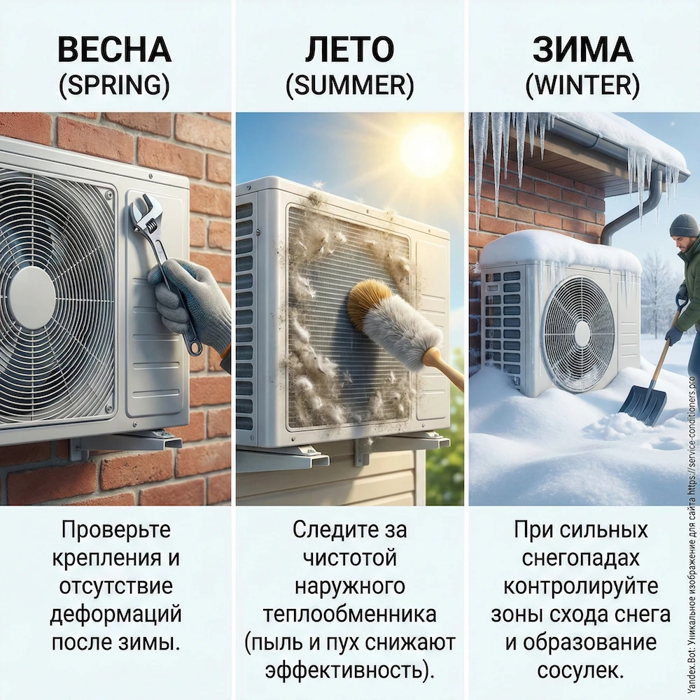 Главное правило: козырек над кондиционером не должен создавать “крышку”, которая задерживает горячий воздух. Для Москвы это критично летом, когда наружный блок работает в перегрев.